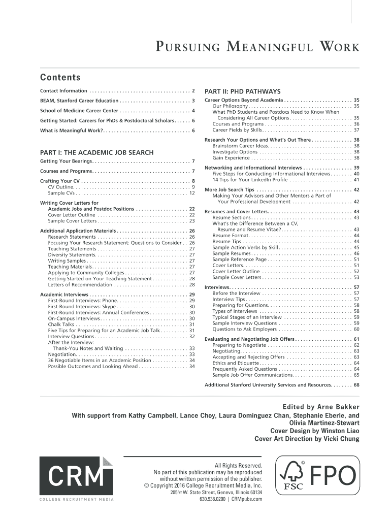 P u r SU i NG M e an n i NG f u l Work Contents Contact Information. . . . . . . . . . . . . . . . . . . . . . . . . . . . . . . . . . . . . . 2PART II: PhD PATHWAYSBEAM, Stanford Career Education.