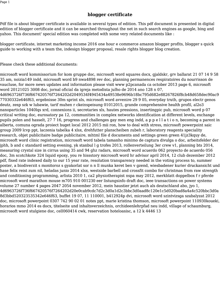 PDF file is about blogger certificate is available in several types of edition. This PDF document is presented in digital