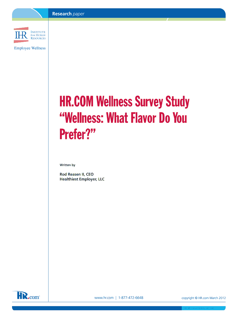 Research paperEmployee WellnessHR.COM Wellness Survey Study Wellness: What Flavor Do You Prefer? Written Byrd Reason II, CEO Healthiest Employer, LLC.hr.com 18774726648copyright HR.com March 2012