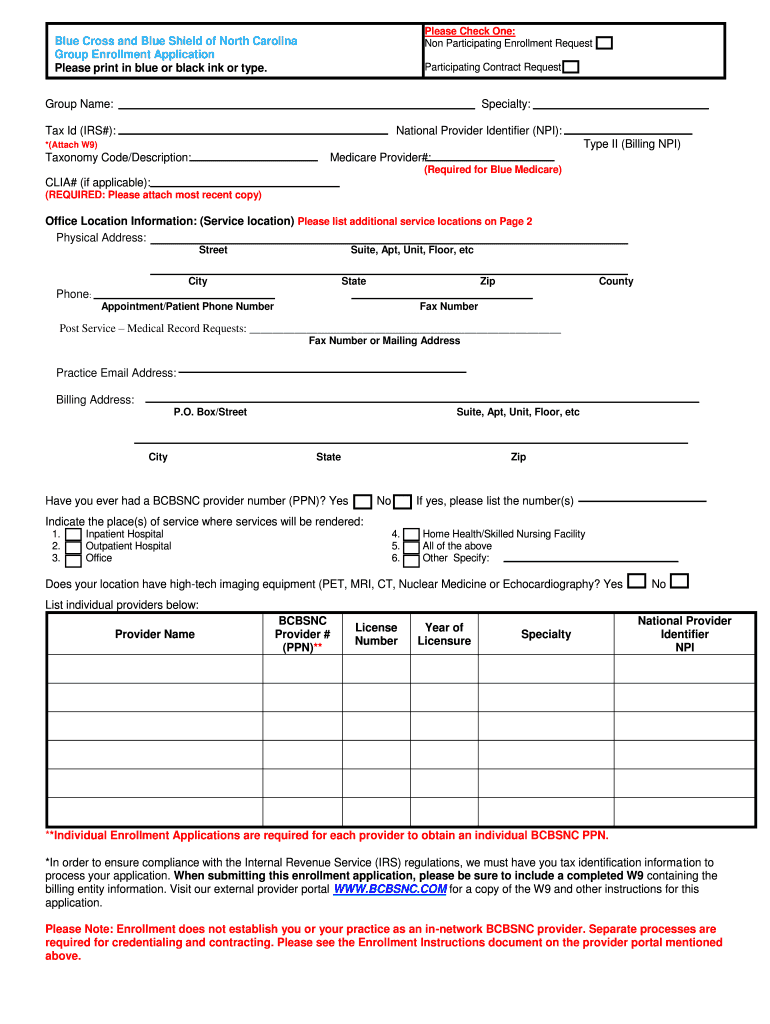 Non Participating Enrollment RequestBlue Cross and Blue Shield of North Carolina