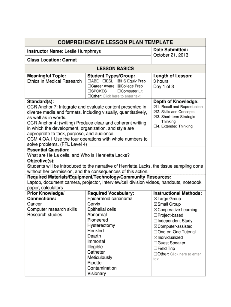 COMPREHENSIVE LESSON PLAN TEMPLATE