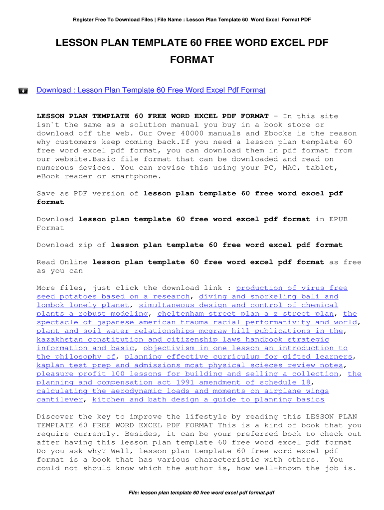 Register Free To Download Files File Name : Lesson Plan Template 60 Word Excel Format LESSON PLAN TEMPLATE 60 FREE WORD EXCEL PDF FORMAT Download : Lesson Plan Template 60 Free Word Excel PDF FormatLESSON