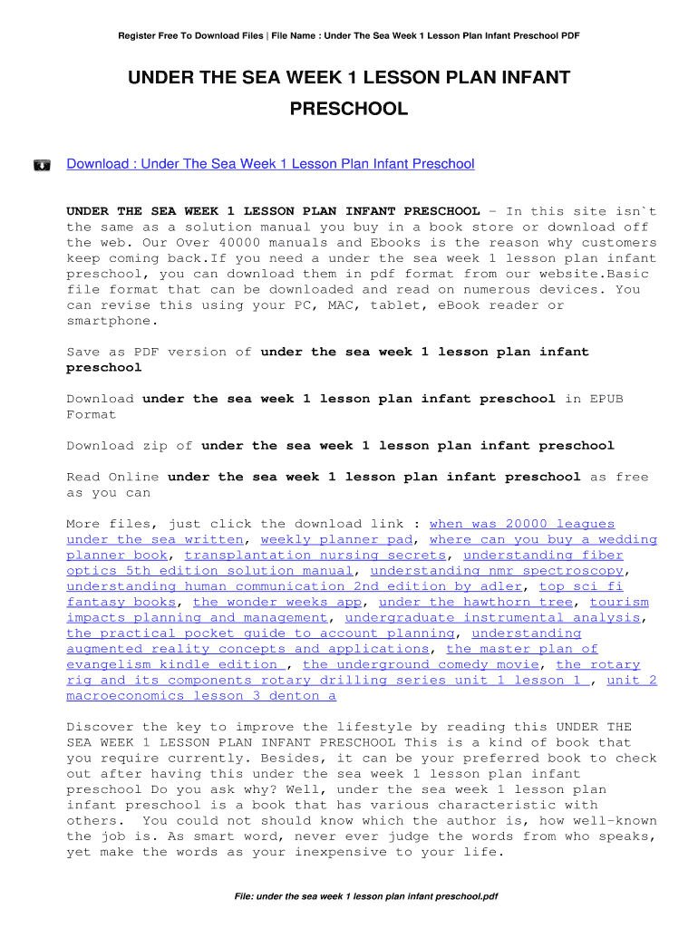 Register Free To Download Files File Name : Under The Sea Week 1 Lesson Plan Infant Preschool PLUNDER THE SEA WEEK 1 LESSON PLAN INFANT PRESCHOOL Download : Under The Sea Week 1 Lesson Plan Infant