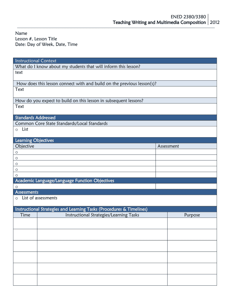 The lesson title can be filled out by simply writing down the name or subject of the lesson being taught.