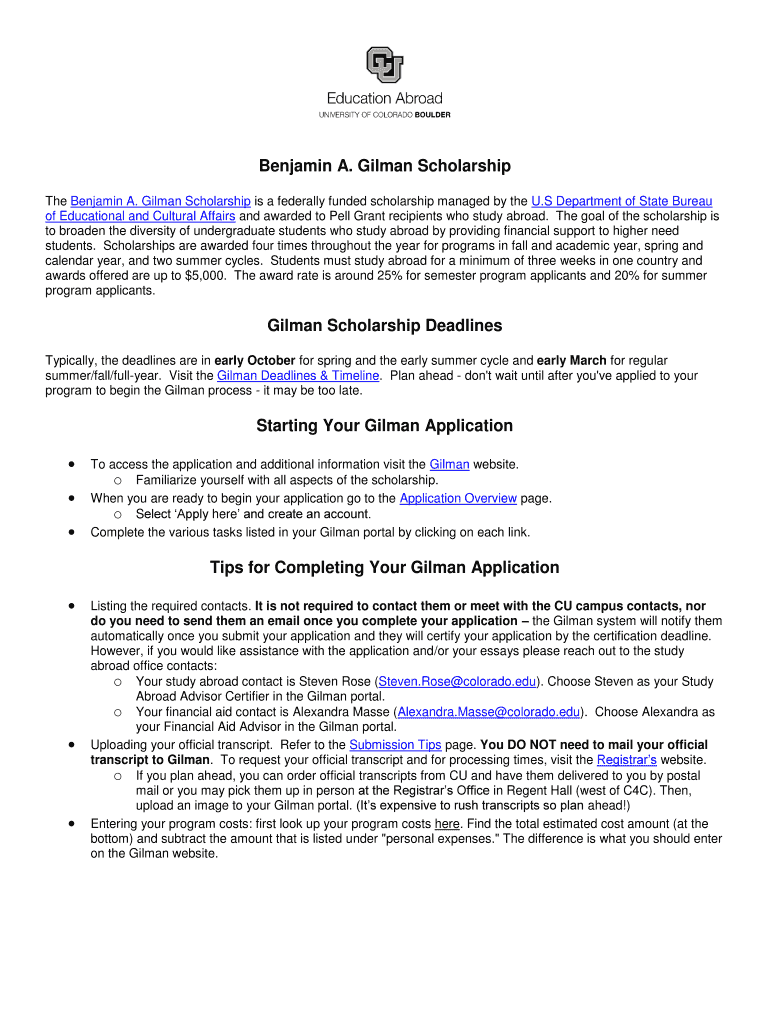 Fill out your gilman scholarship online with pdfFiller!