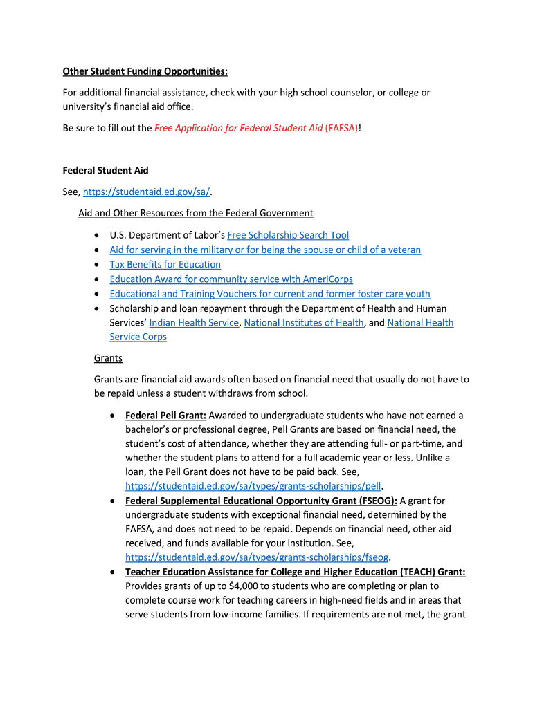 Get the free Other Student Funding Opportunities: