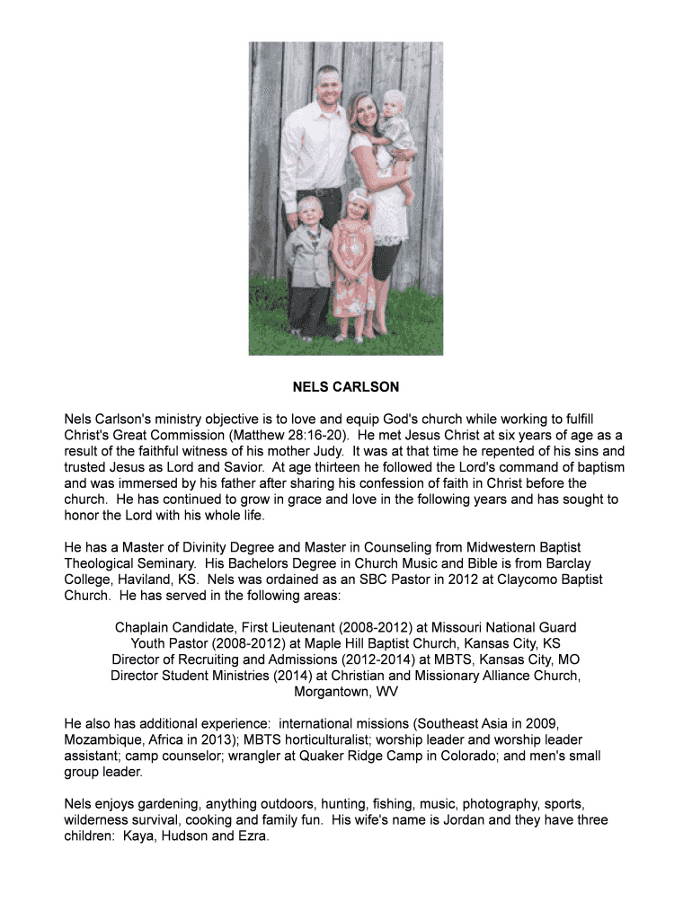 Fill out your nels carlsons ministry objective online with pdfFiller!