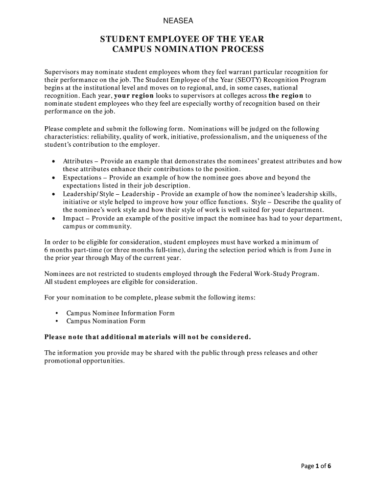 Get the free nominate student employees who they feel are especially worthy of recognition based ...