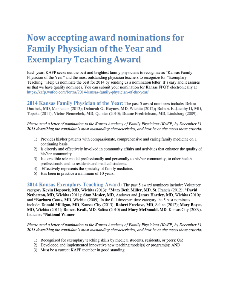 Get the free Now accepting award nominations for