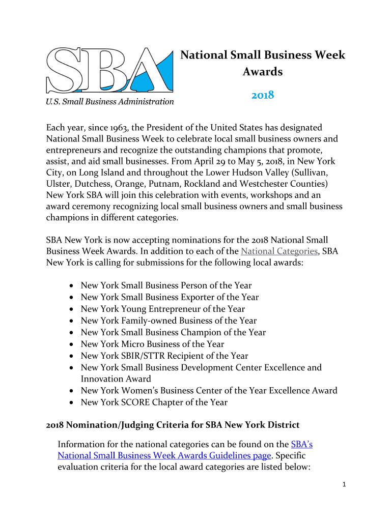 Step 1: Determine the eligibility criteria for participating in national small business week.