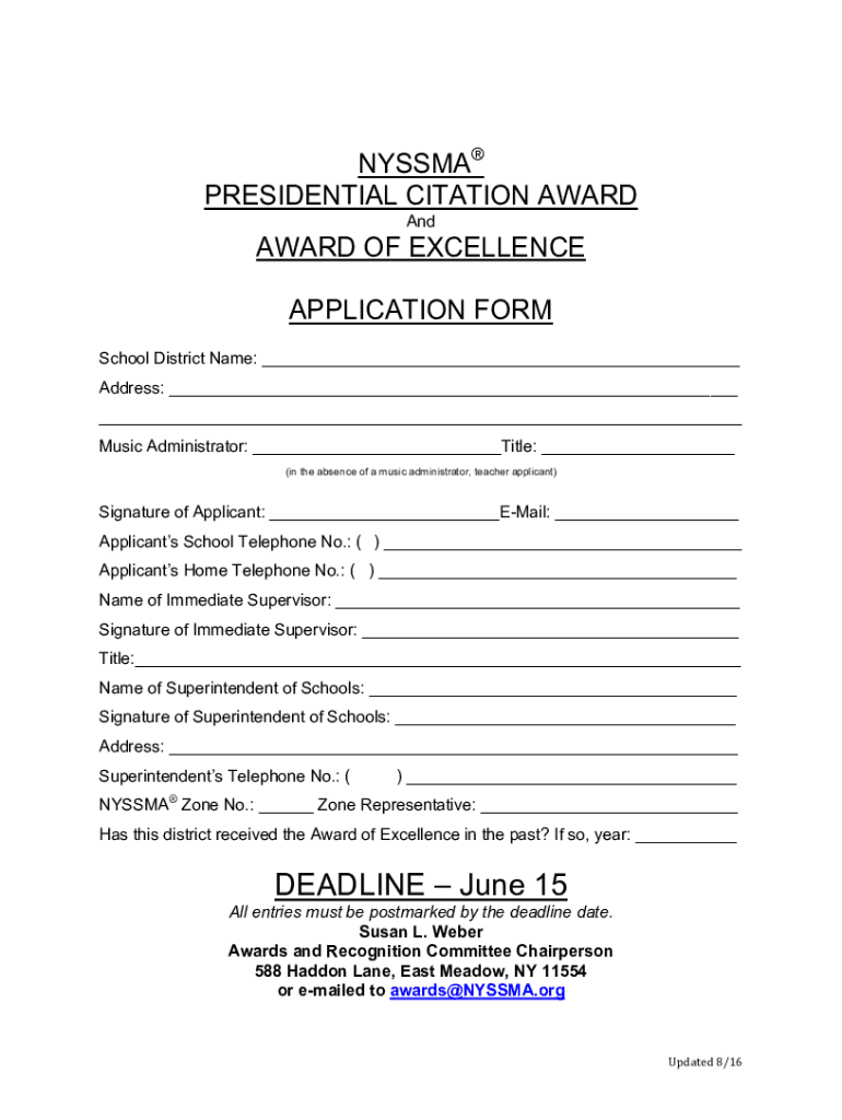 Instructions NYASA Presidential Citation Award and the NYASA Award of Excellence are