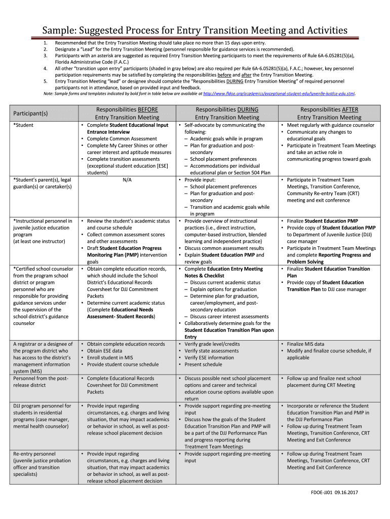 Get the free Sample: Suggested Process for Entry Transition Meeting and Activities
