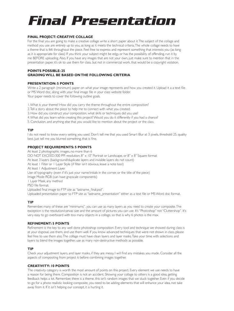 Get the free FINAL PROJECT: CREATIVE COLLAGE