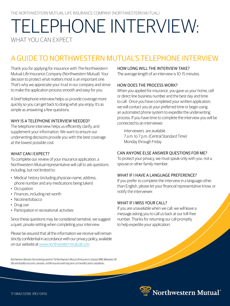 THE NORTHWESTERN MUTUAL LIFE INSURANCE COMPANY (NORTHWESTERN MUTUAL)Telephone Interview:What You Can Expect Guide to Northwestern Mutual Telephone Interview