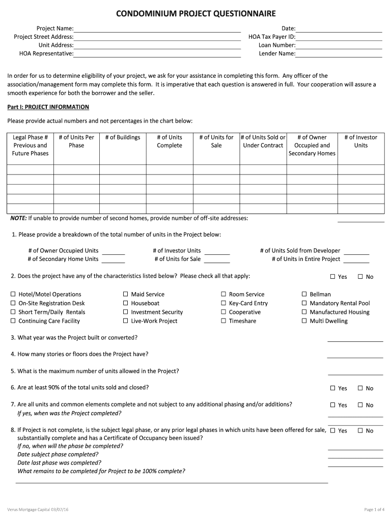 CONDOMINIUM PROJECT QUESTIONNAIRE