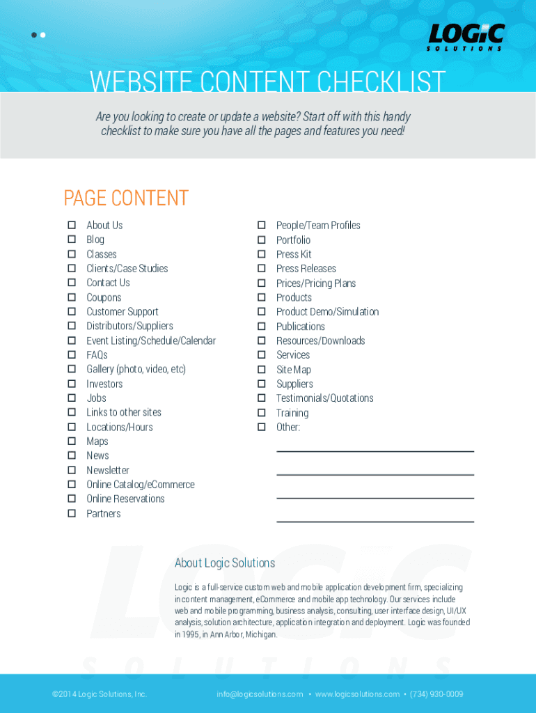 WEBSITE CONTENT CHECKLIST GUIDE TO READY YOURSELF FOR WEBSITE Design. Logic solutions. Website CONTENT CHECKLIST Are you looking to create or update a website? Start off with this handy checklist