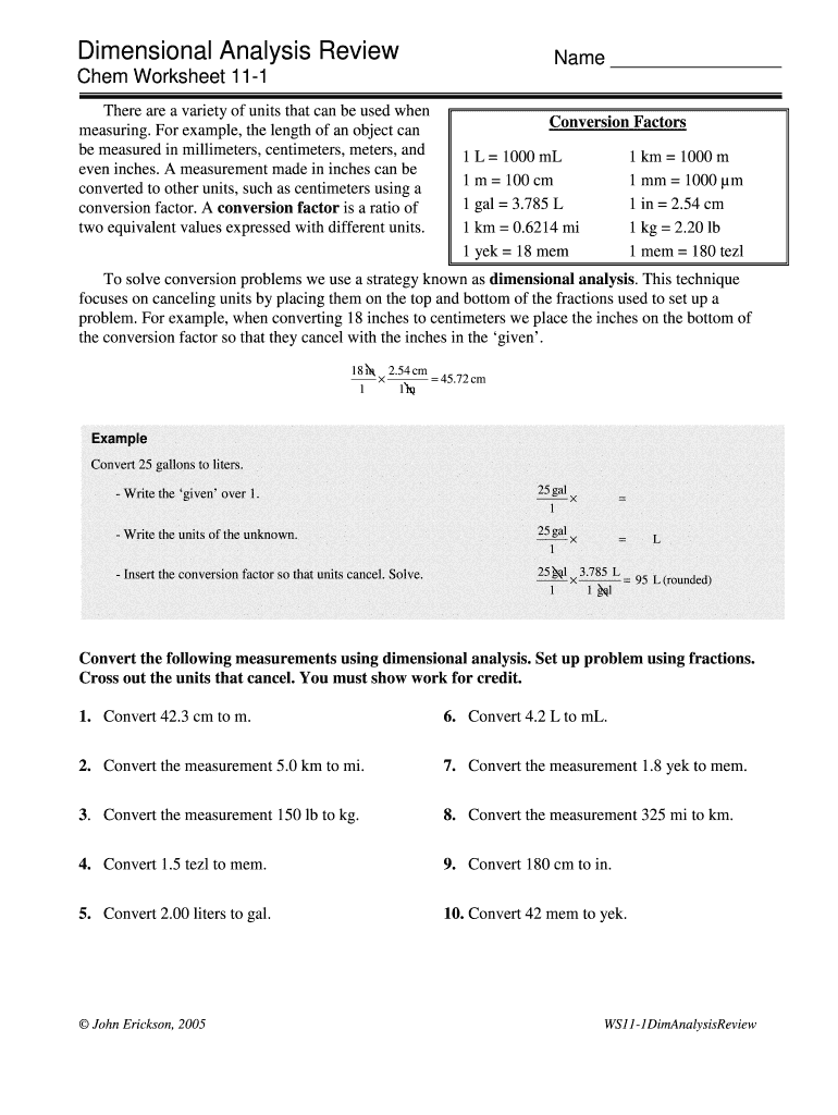 Dimensional Analysis Reviewable Chem Worksheet 111There are a variety of units that can be used when measuring. For example, the length of an object can be measured in millimeters, centimeters, meters,