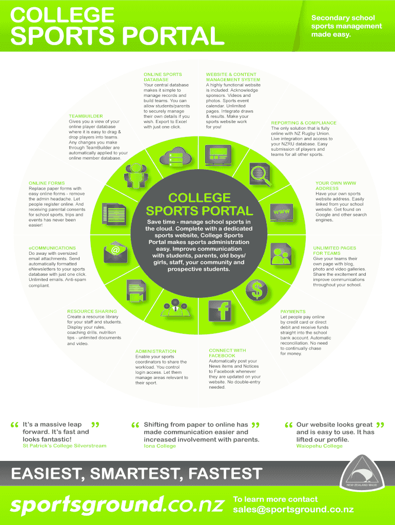 COLLEGESecondary school sports management made easy. SPORTS PORTAL ONLINE SPORTS DATABASE Your central database makes it simple to manage records and build teams. You can allow students/parents to