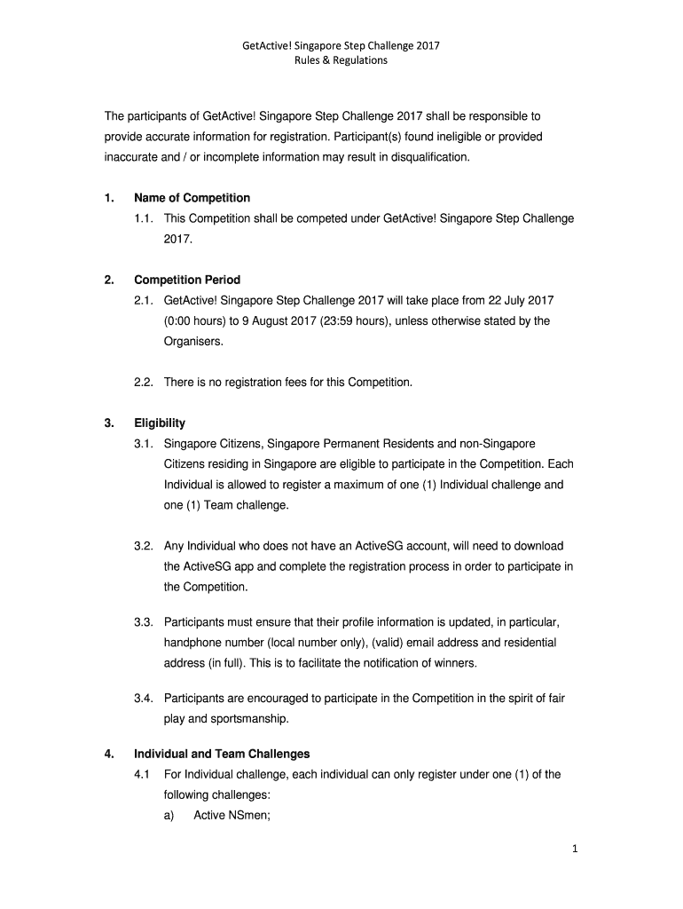 Detective! Singapore Step Challenge 2017 Rules & Regulations participants of Detective! Singapore Step Challenge 2017 shall be responsible to provide accurate information for registration. Participant(s)