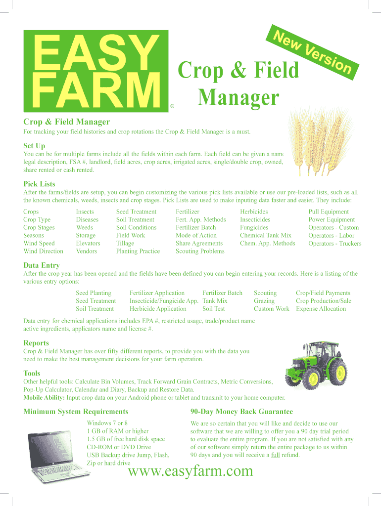 Easy farm Ne New V w Very version ion Crop & & Field Manager ManagerCrop & Field Manager Crop For tracking & Field your field Manager histories and crop rotations the Crop & Field Manager is a must.