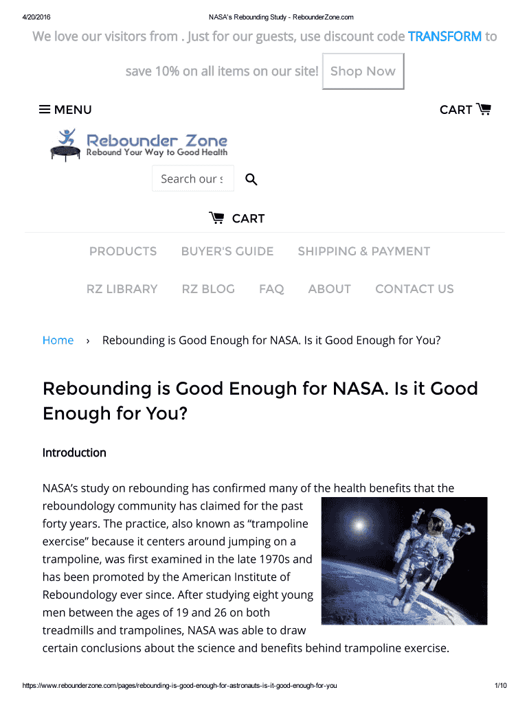 4/20/2016NASA 'sReboundingStudyRebounderZone.come love our visitors from. Just for our guests, use discount code TRANSFORM to save 10% on all items on our site! Shop Now MENUBAR Search our stores