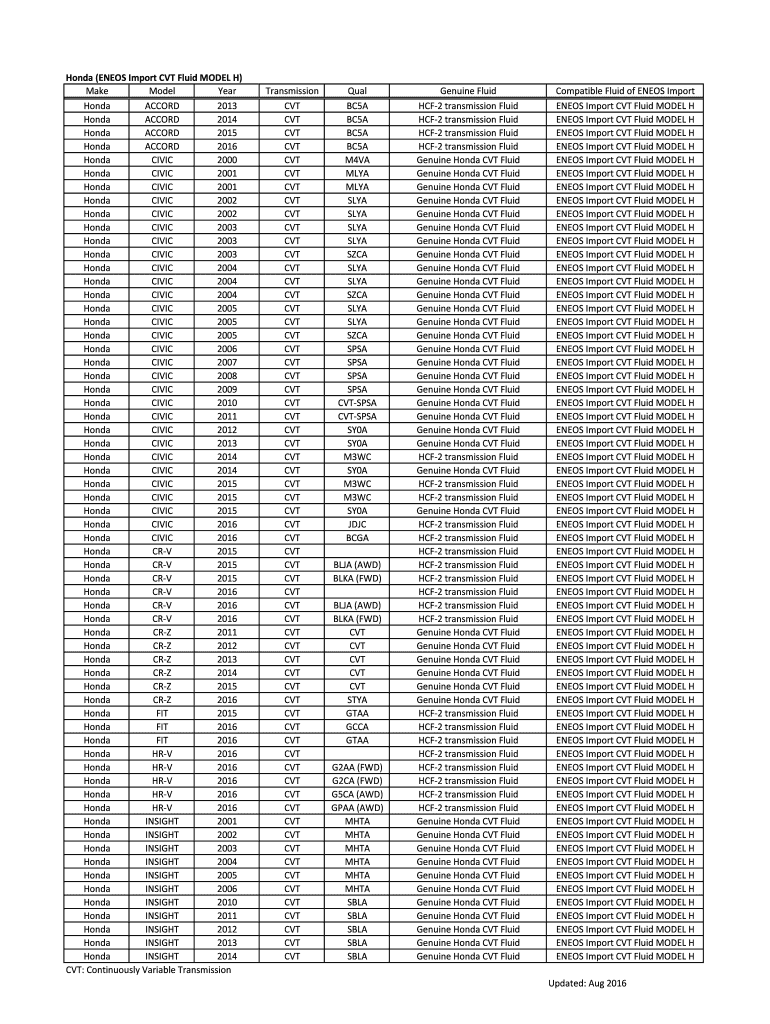 Get the free Honda (ENEOS Import CVT Fluid MODEL H)