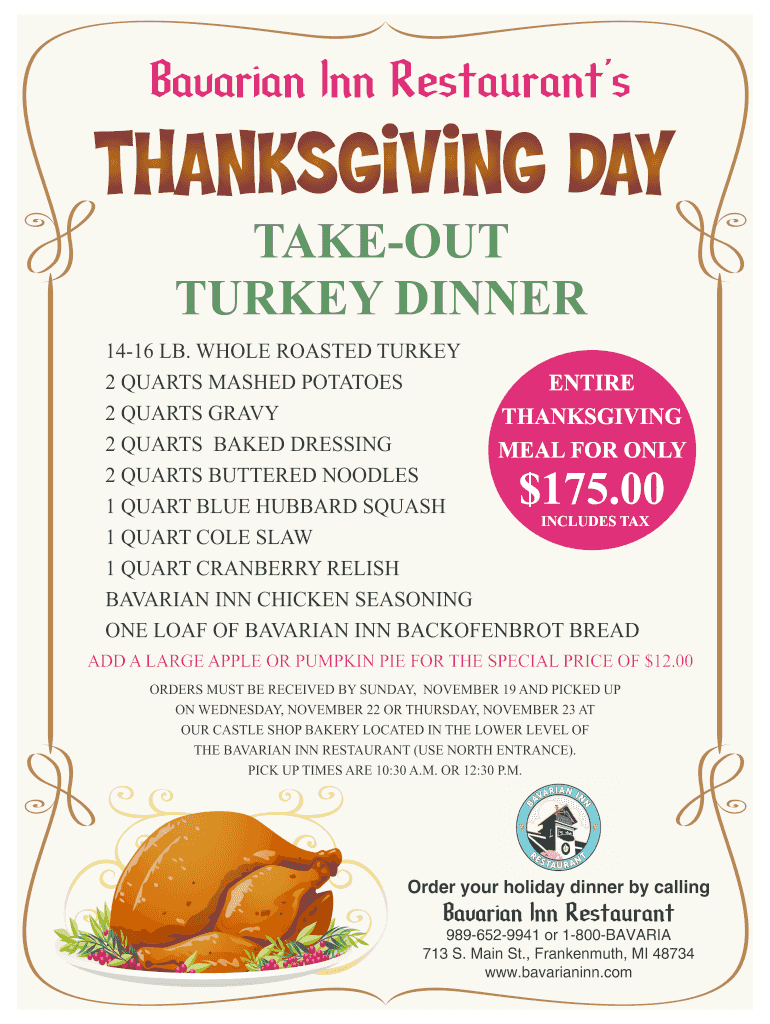 Start by entering the Bavarian Inn Restaurants website or visit the physical location.