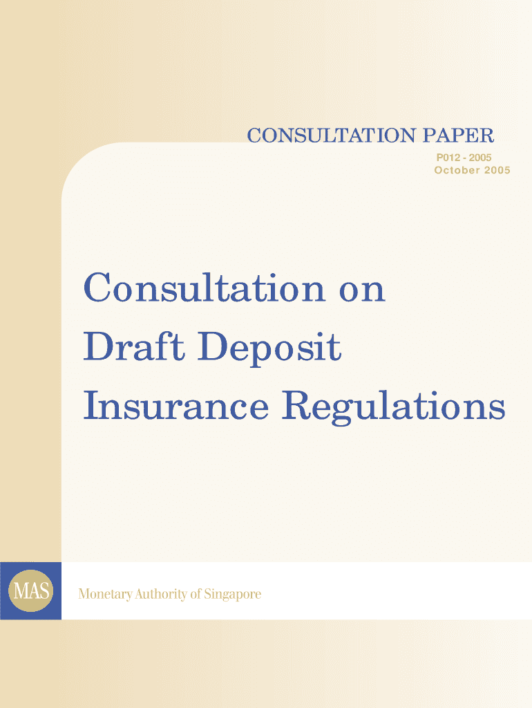 CONSULTATION PAPER P012 2005 October 2005Consultation on Draft Deposit Insurance RegulationsConsultation on Draft Deposit Insurance Regulations Oct 2005PREFACE The Deposit Insurance Act, which establishes