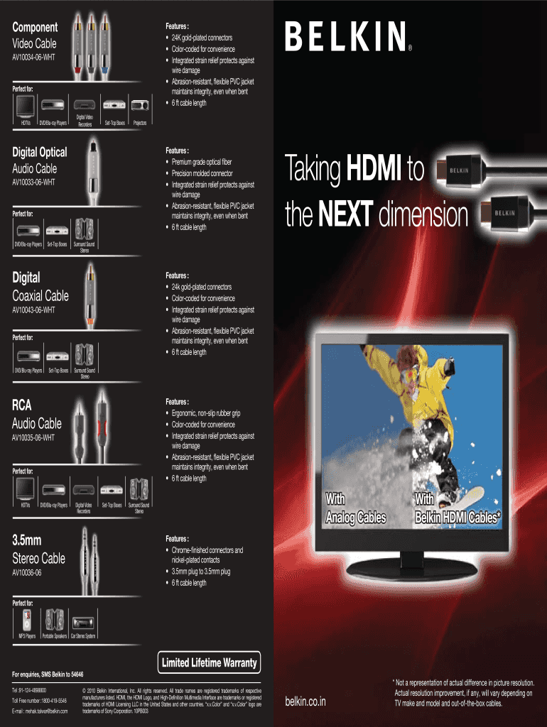 Component Video CableFeatures : 24K gold-plated connectors Color coded for convenience Integrated strain relief protects against wire damage Abrasion resistant, flexible PVC jacket maintains integrity,