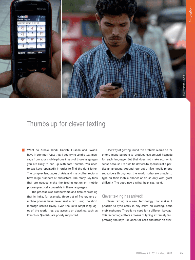 GSMA/Ashish MauryaThumbs up for clever textingWhat do Arabic, Hindi, Finnish, Russian and Swahili