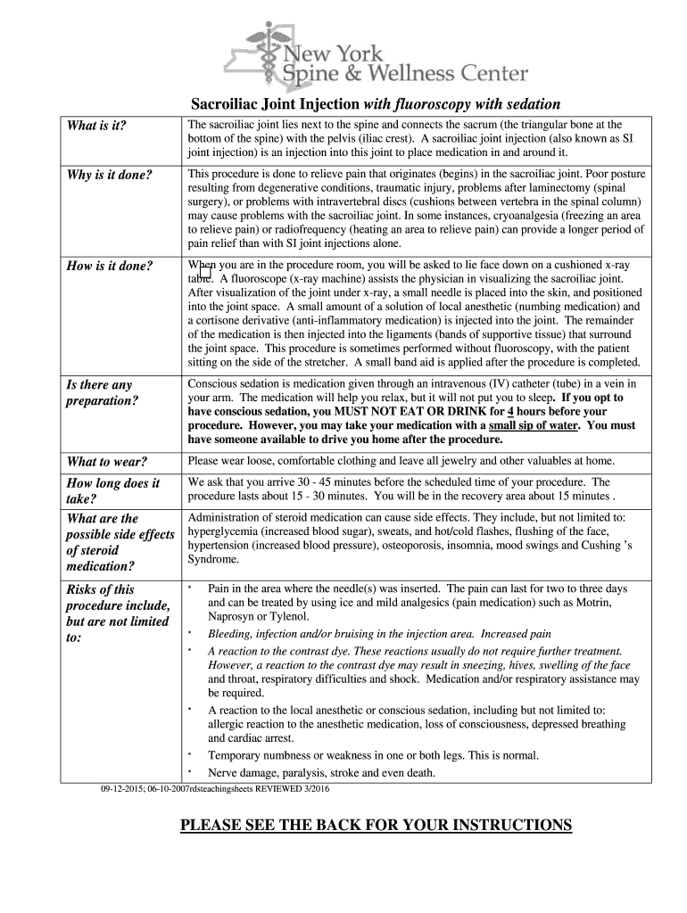 Get the free Sacroiliac Joint Injection with fluoroscopy with sedation