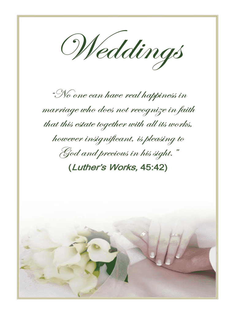Weddings No one can have real happiness in marriage who does not recognize in faith that this estate together with all its works, however insignificant, is pleasing to God and precious in his sight.