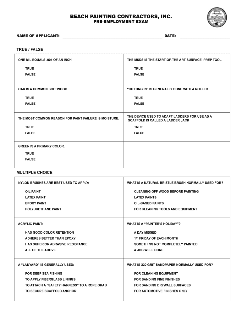 NAME OF APPLICANT:DATE:TRUE / FALSE
