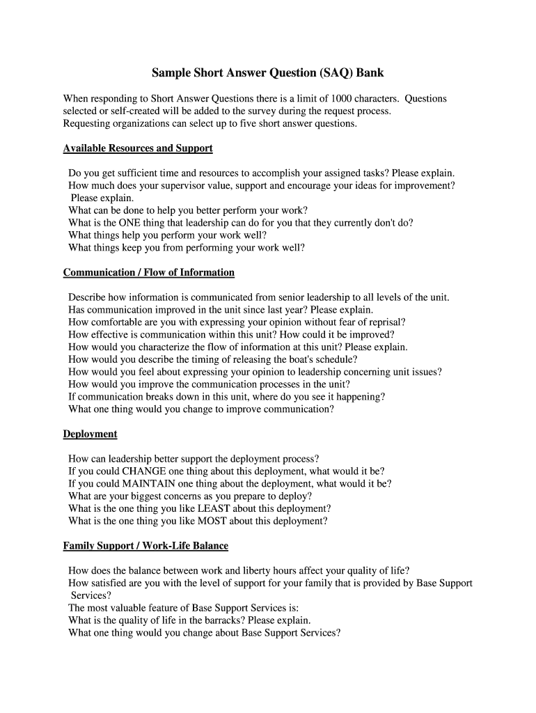 When responding to Short Answer Questions there is a limit of 1000 characters. Questions