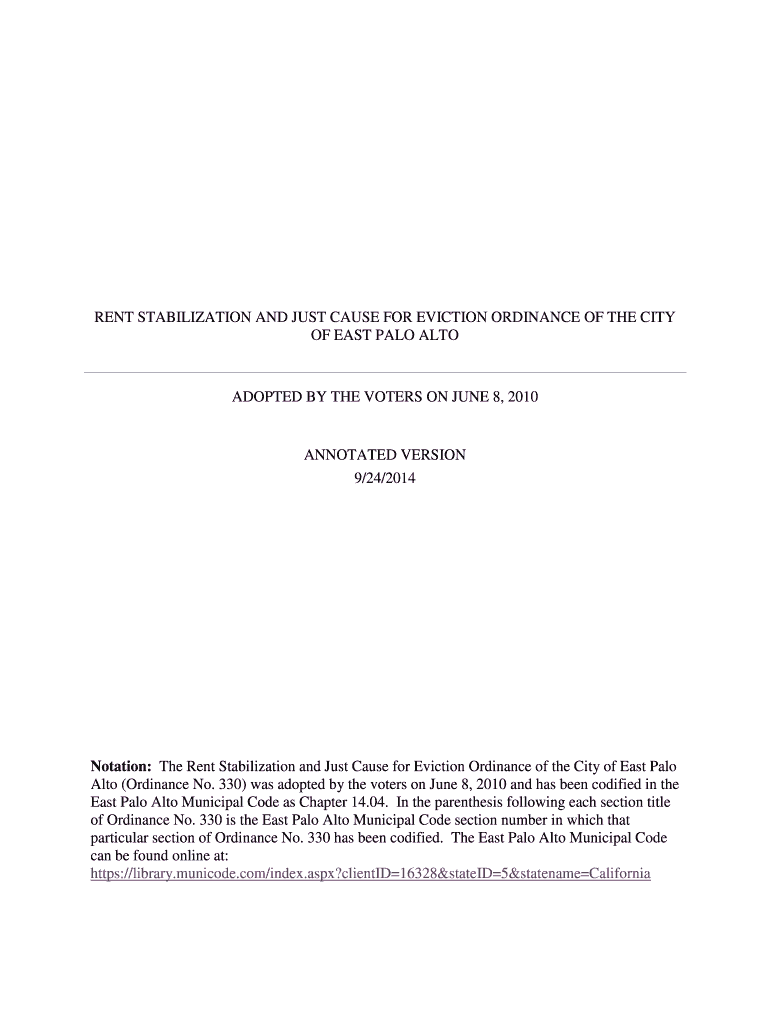 RENT STABILIZATION AND JUST CAUSE FOR EVICTION ORDINANCE OF THE CITY