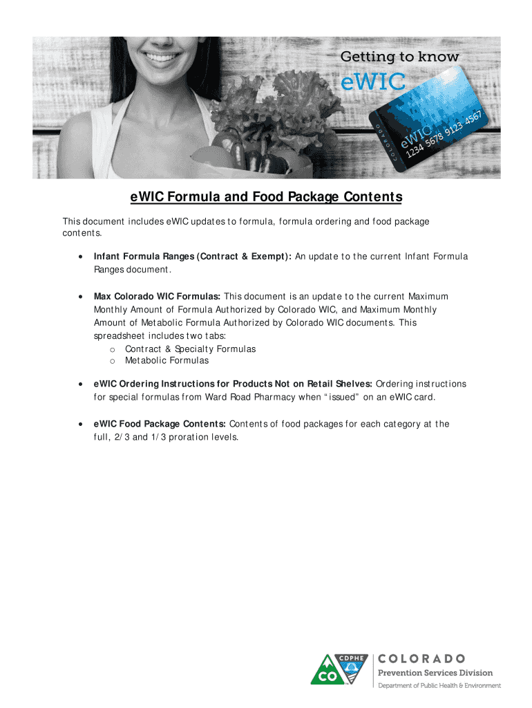 ERIC Formula and Food Package Contents This document includes Eric updates to formula, formula ordering and food package contents. Infant Formula Ranges (Contract & Exempt): An update to the current