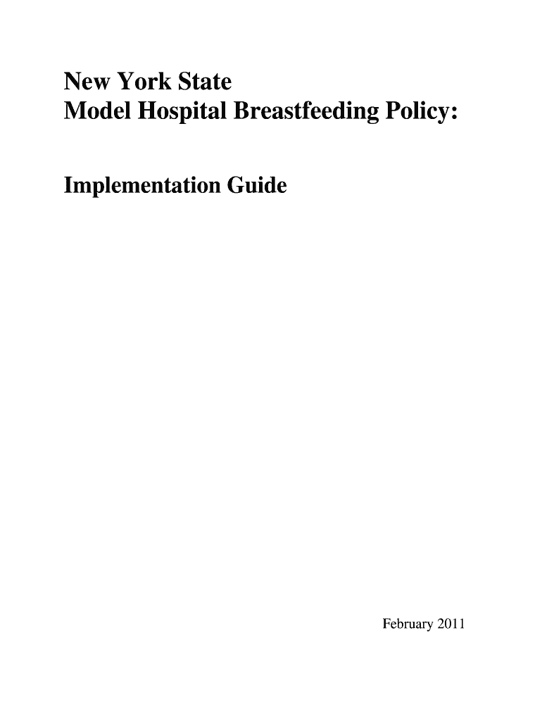Implementation Guide February 2011New York State Model Hospital Breastfeeding Policy: Implementation GuideBreastfeeding benefits infants by promoting