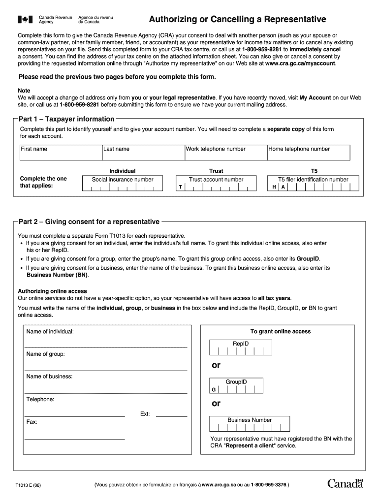 This form is significant for taxpayers, allowing seamless representation in discussions regarding income tax issues. By completing the T1013 form, individuals appoint a representative, streamlining communications with the CRA and ensuring compliance with Canadian tax regulations.