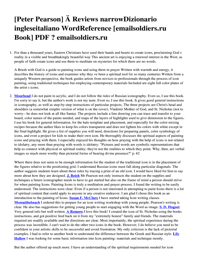 Peter Pearson Reviews narrowDizionario ingleseitaliano WordReference email soldiers. Ru Book PDF ? Email soldiers. Ru 1. For than a thousand years, Eastern Christians have used their hands and hearts