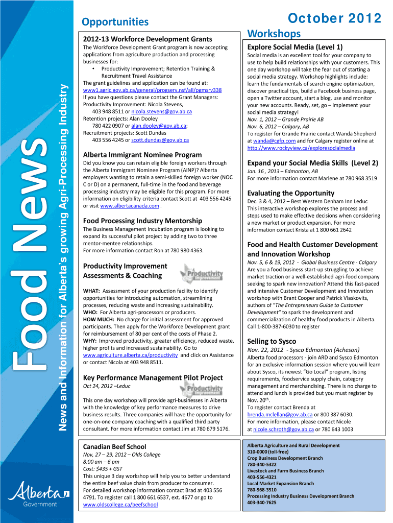 OpportunitiesNews and Information for Alberta's growing Reprocessing Industry201213 Workforce Development Grants Workforce Development Grant program is now accepting applications from agriculture
