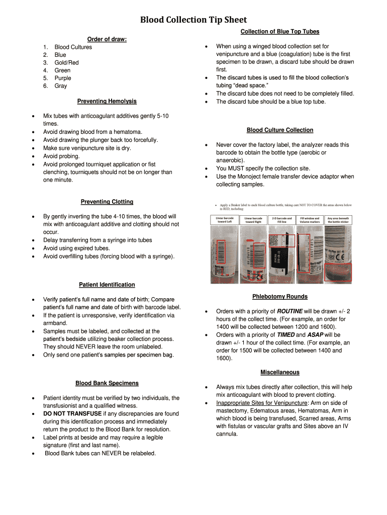 All healthcare professionals involved in blood collection are required to file the blood collection tip sheet.