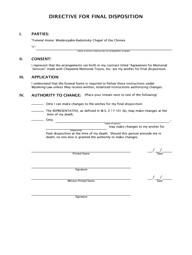 Get the free Wyoming Final Disposition Directive