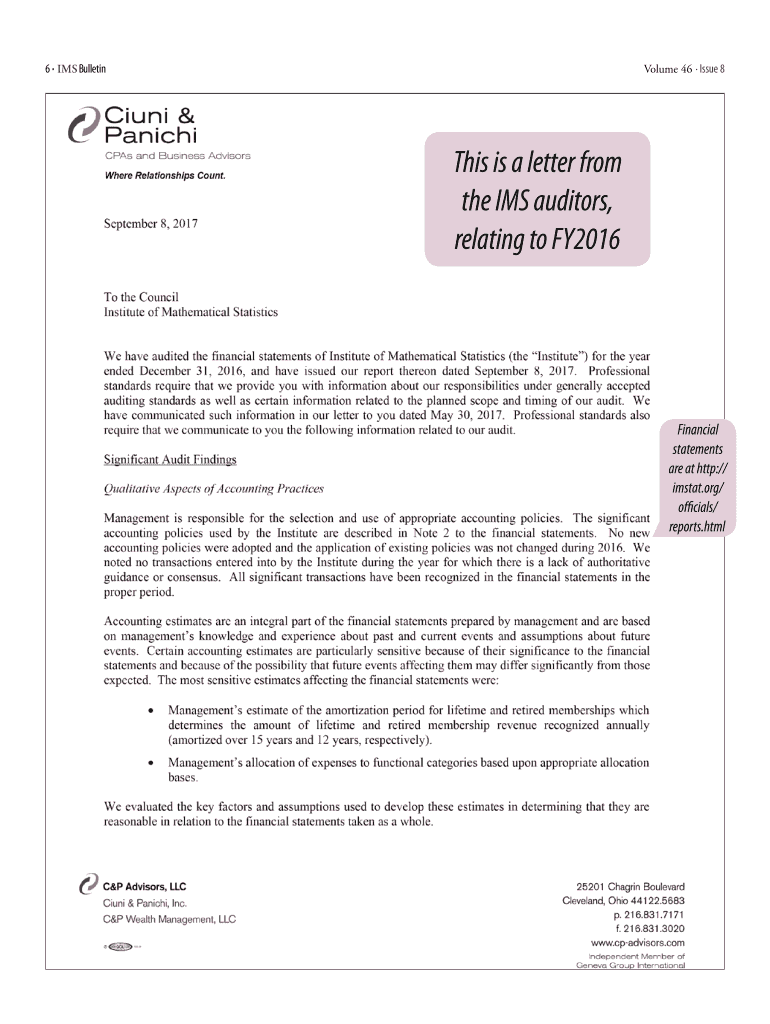 reports.htmlDecember. 2017IMS Bulletin. 7To the