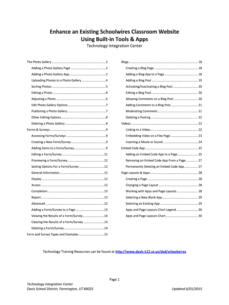 Enhance an Existing School wires Classroom Website Using Builtin Tools & Apps Technology Integration Center Photo Gallery ...............................................................2Blogs .................................................................................