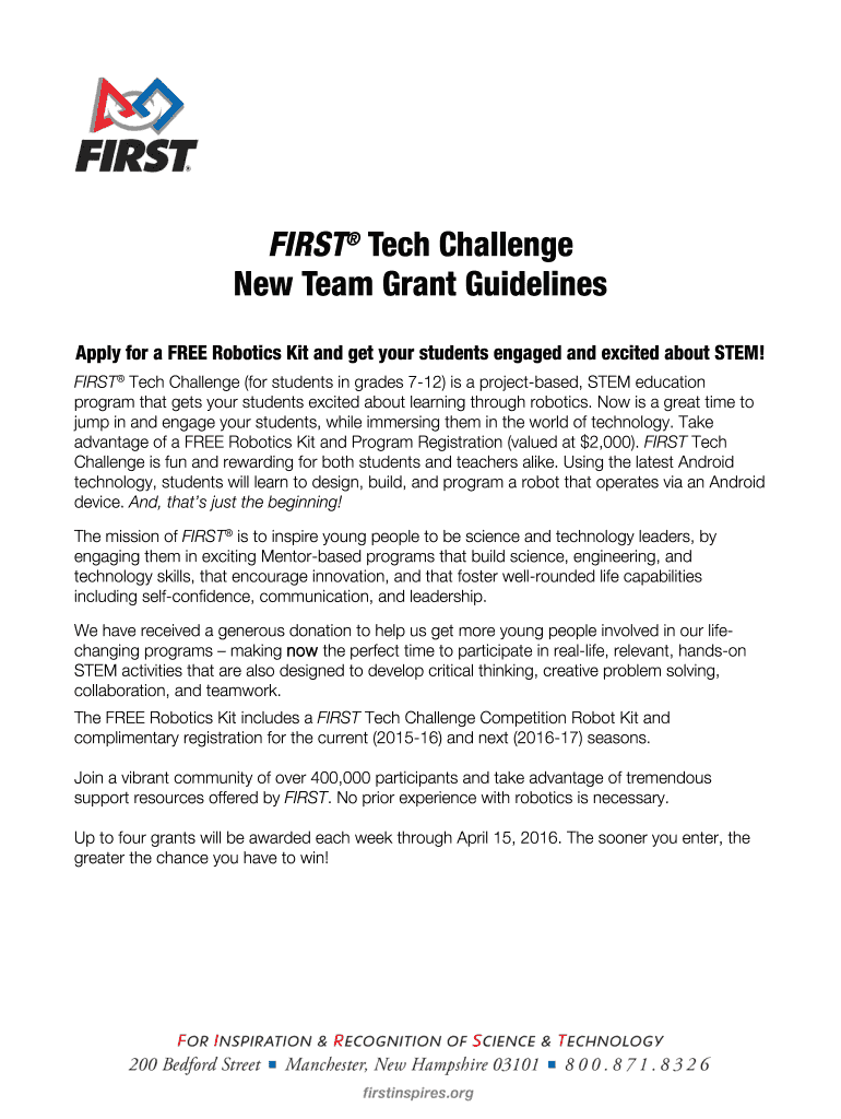 Apply for a FREE Robotics Kit and get your students engaged and excited about STEM!