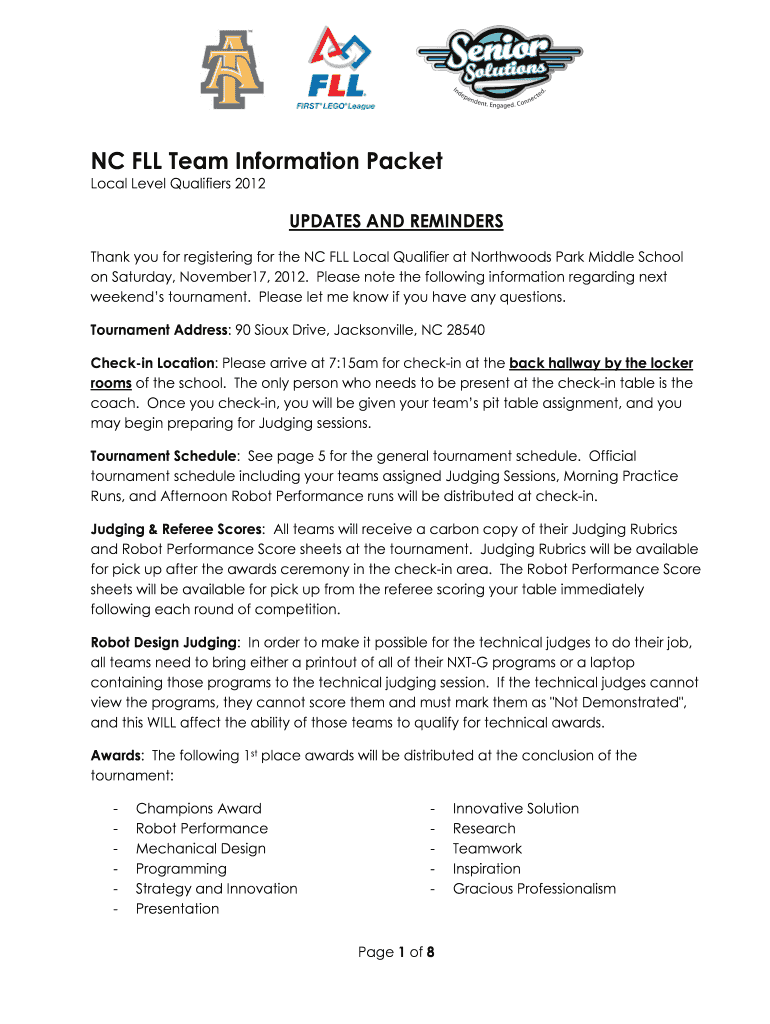 Get the free NC FLL Team Information Packet