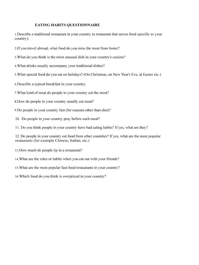 EATING HABITS QUESTIONNAIRE
