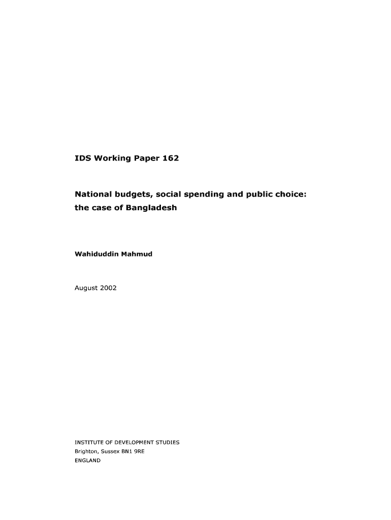 , '6 :RUNLET 3DSHU 1DWLRQDO EXGJHWV RFID VSHQGLQJ DOG SELF FORTH BKH FD VH RI %DQJODGHVK:DKLGXGGLQ 0DKPXG×XXV DITUDUVU PA9 W MPH IUTUV9D T 7vtuTr7I (S IBG6I9L:DKLGXGGLQ 0DKPXG LV 3URIHVVRU RI (FRQRPLFV