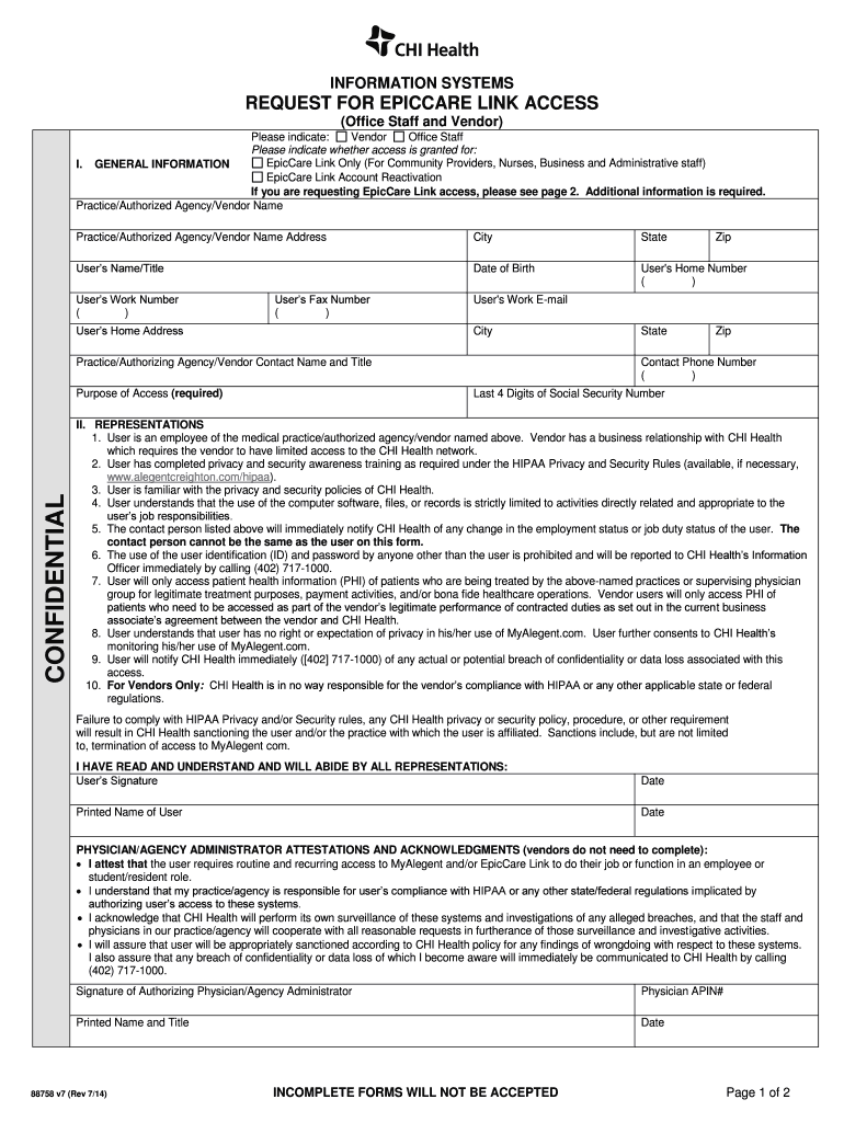 INFORMATION SYSTEMSREQUEST FOR EPIC CARE LINK ACCESS