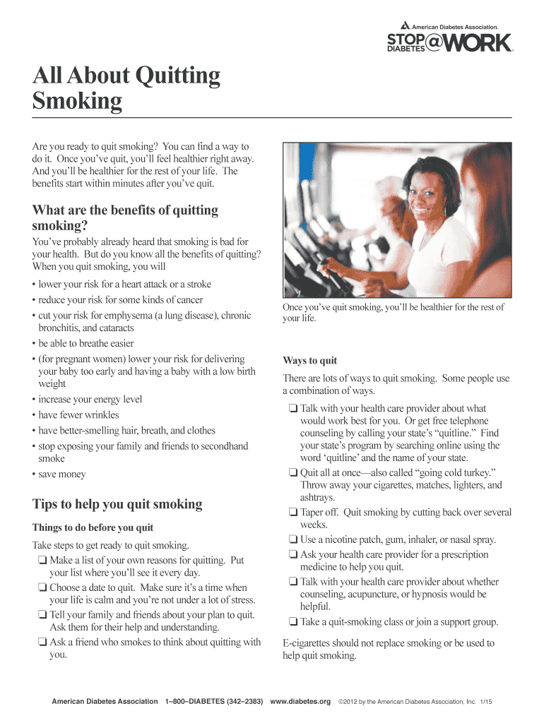 All About Quitting Smoking Are you ready to quit smoking? You can find a way to do it. Once you've quit, you'll feel healthier right away. And you'll be healthier for the rest of your life. The benefits